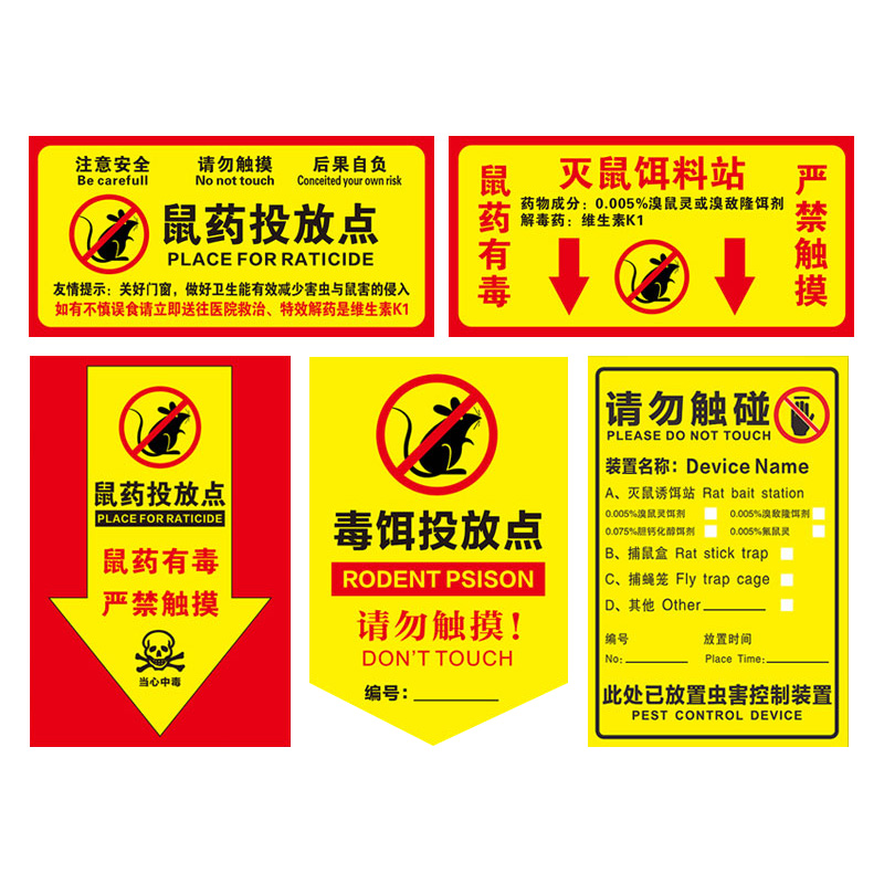 老鼠饵药投放点提示牌 老鼠屋鼠药投放点当心老鼠夹老鼠盒标签纸便签不干胶PVC标贴安全警示贴标识标志粘纸