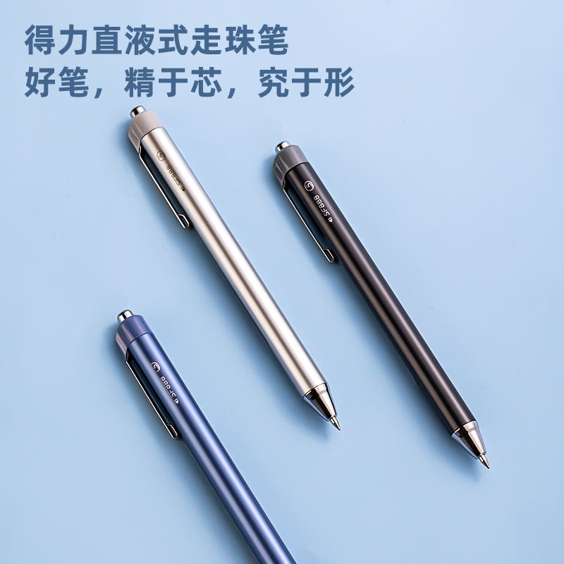 得力直液式走珠笔速干大容量直液笔0.5黑色中性笔学生用速干刷题笔水性笔直液笔圆珠笔商务办公简约风笔杆