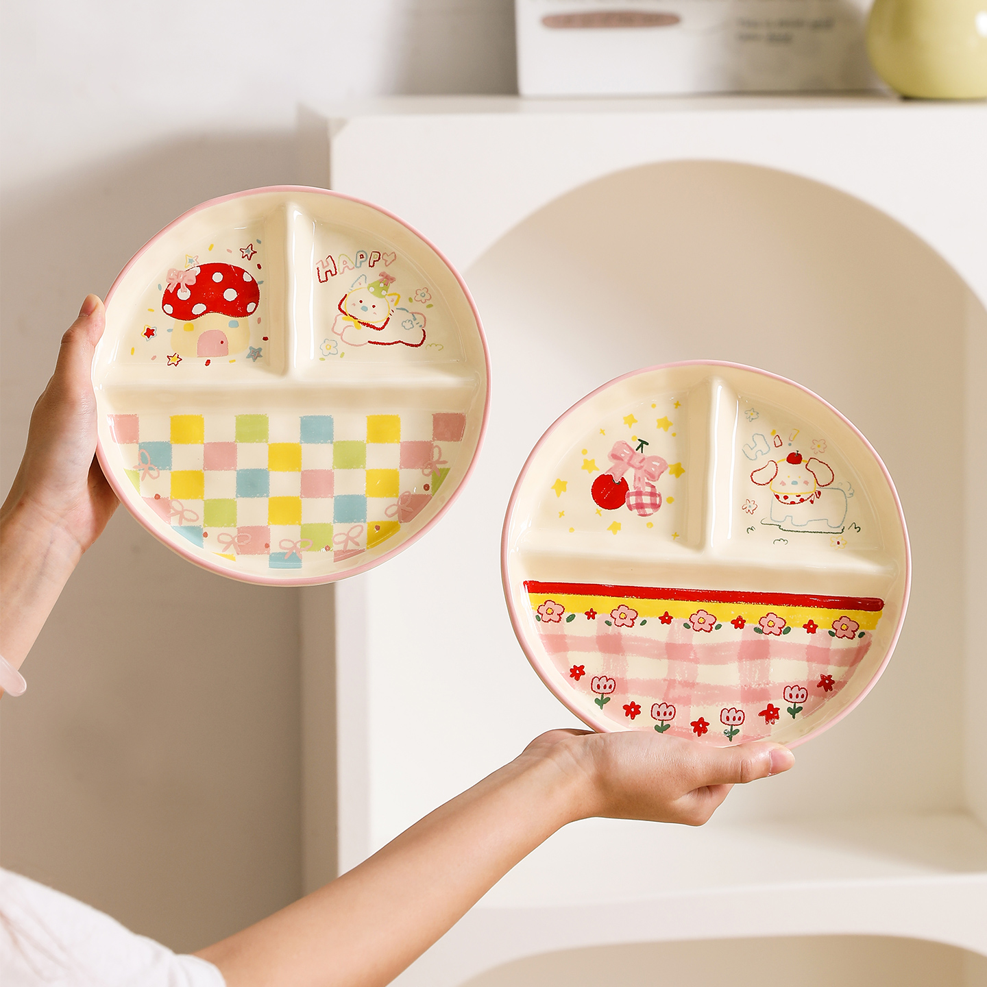 舍里陶瓷卡通分格餐盘家用可爱儿童吃饭盘个人专用一人食分餐盘