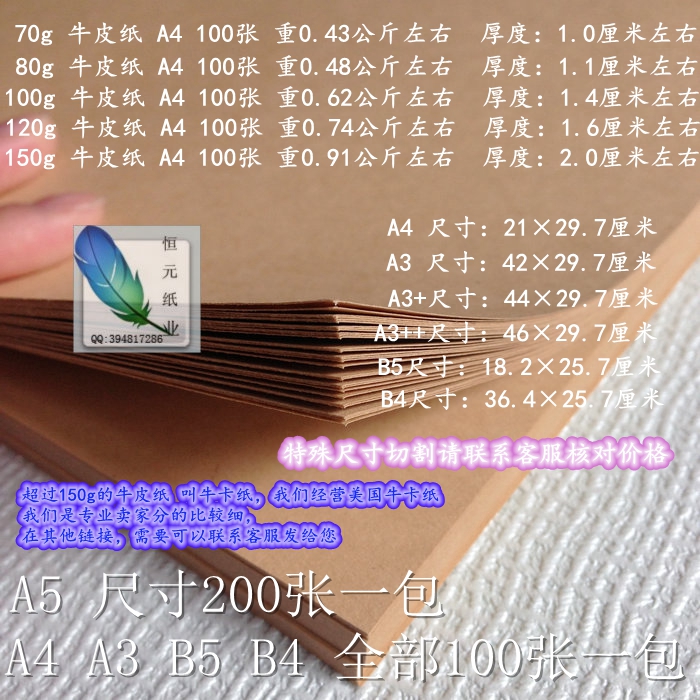 牛皮纸 深色 全木浆 进口 牛皮卡B4/B5/70/80/100/120/150g克凭证