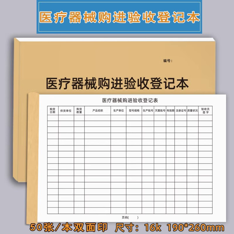 医疗器械购进验收登记本药品购进验收记录本医疗机构设备消毒登记簿门诊药店药品登登记本记录本定制定做