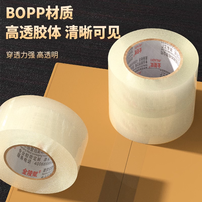 透明警示胶带快递打包封口封箱胶带整箱批发米黄色大卷宽包装胶纸
