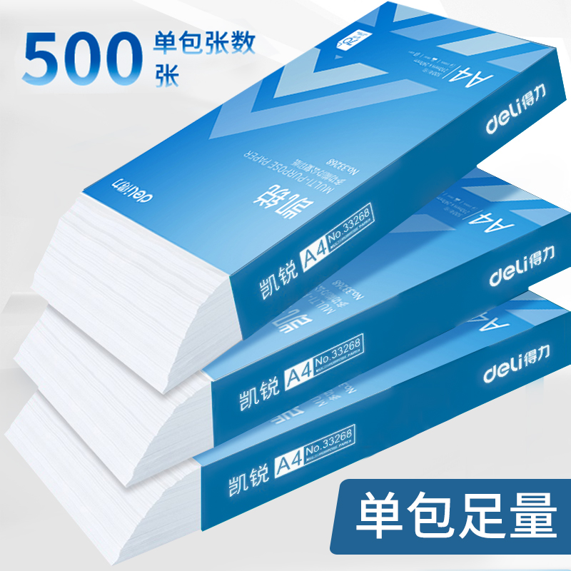 得力护眼a4打印纸一包500张 实惠装A4纸张100张打印纸复印纸a4纸打印纸草稿纸白纸考研A4纸学生用办公打印纸