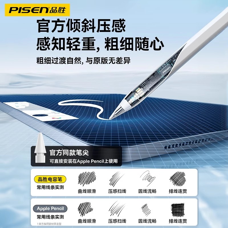 品胜apple pencil电容笔ipad触控笔防误触适用苹果一代2代ipadpencil触屏笔ipencil二代pro平板air手写笔平替