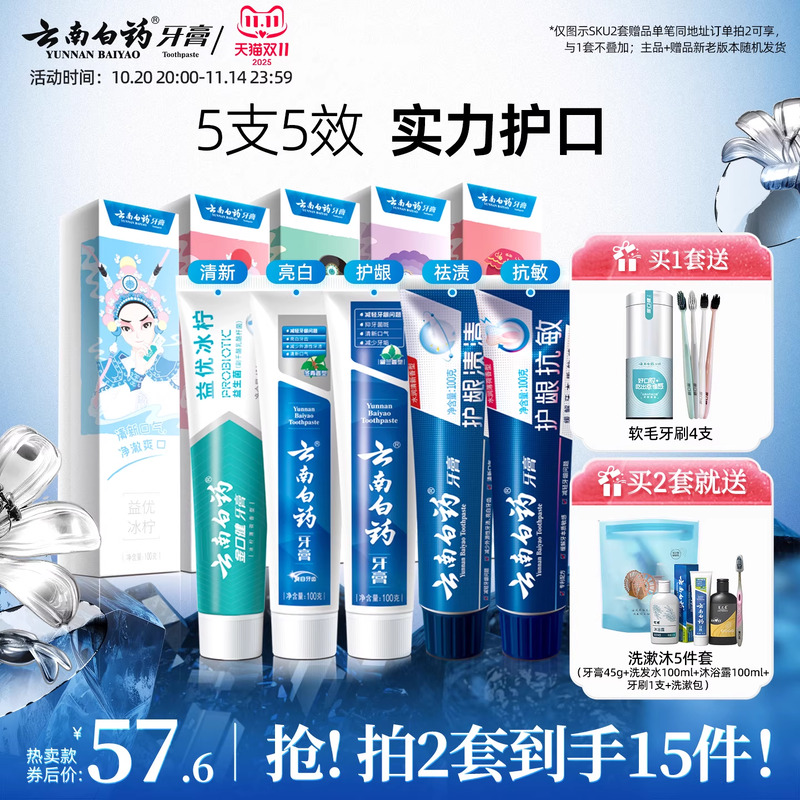 云南白药牙膏清新口气成人亮白牙齿牙刷口腔套装官方旗舰店正品