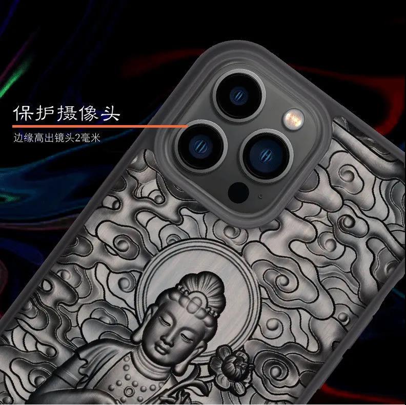 老黑檀适用苹果15手机壳高级感8防摔iphone13手机壳14生肖保护神12套plus苹果13promax佛祖檀木16pro本命佛17