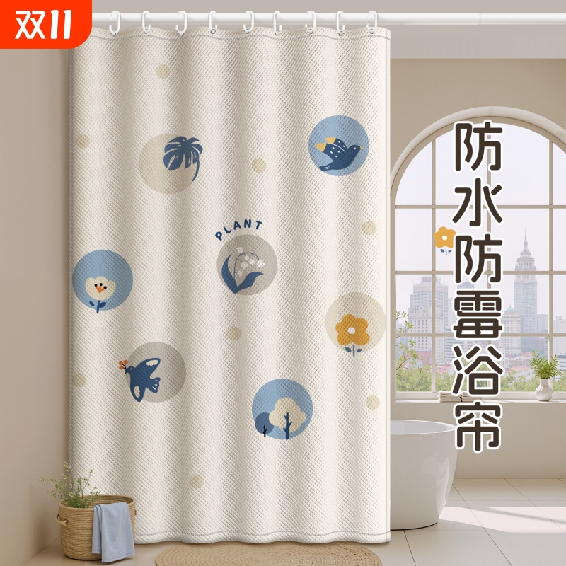 浴室防水浴帘卫生间防霉免打孔门帘厕所隔断高档遮挡窗帘淋浴洗澡