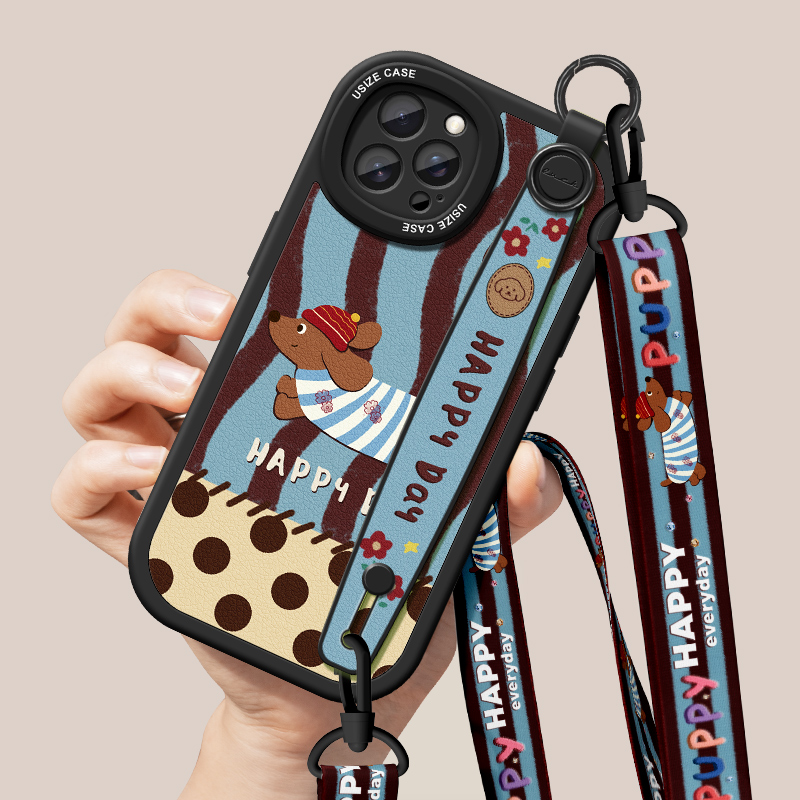 点点小狗适用苹果15/16promax手机壳新款iPhone15腕带8支架14斜挎16pro可背带挂绳11/13女plus硅胶12全包17