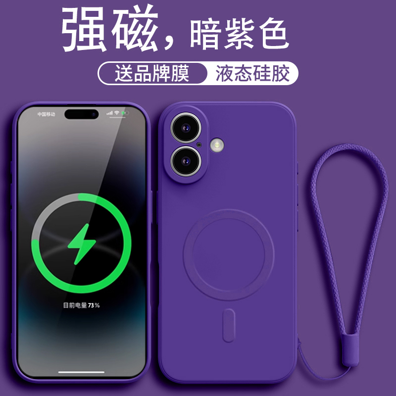 适用于苹果16手机壳新款磁吸iPhone16promax液态硅胶保护套无线充电16pro樱花紫女款防摔简约纯色16plus外壳