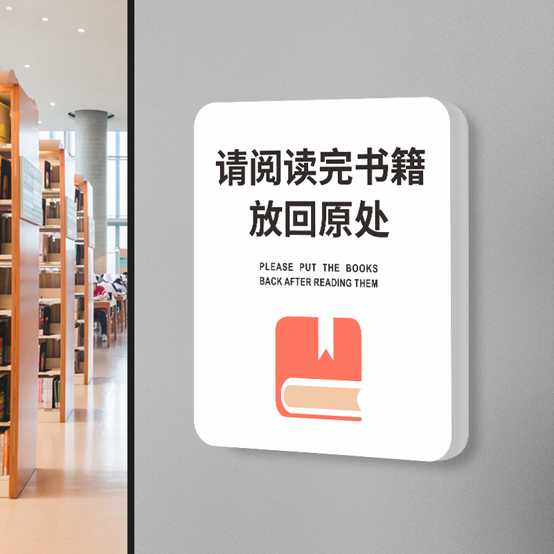 图书馆保持安静提示牌如需借阅请登记标识标牌定制请将阅读完书籍及时归还并放回原处摆放温馨指示标志墙贴纸