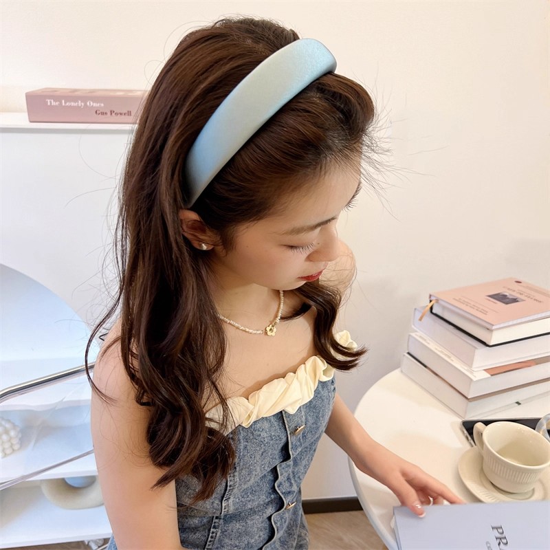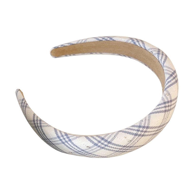 韩国进口气质简约蓝色系布艺高颅顶显脸小发箍百搭网红格纹发卡女