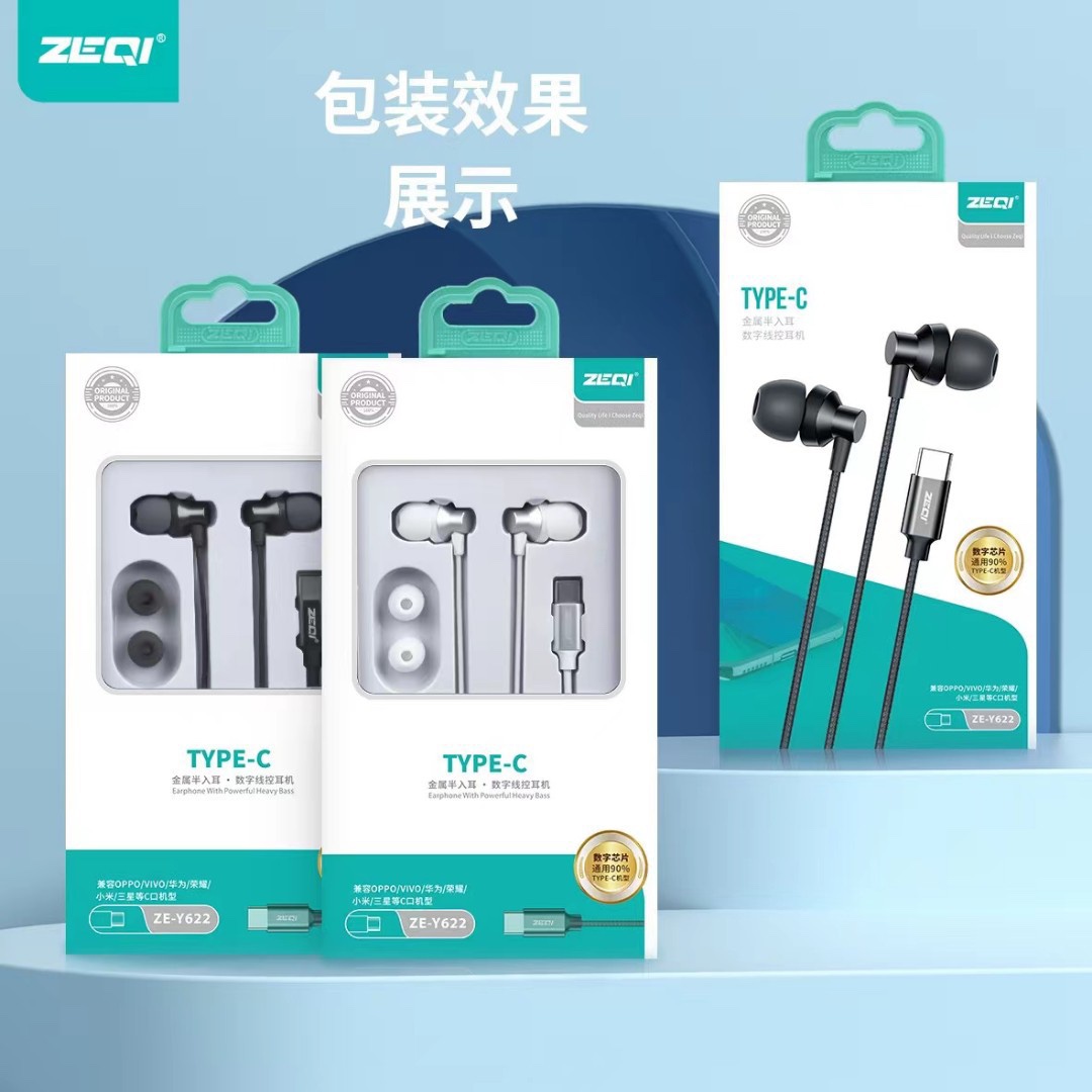 现货泽奇Y622金属T-C耳机 入耳式数字解码TYPE-C口直插线控耳机