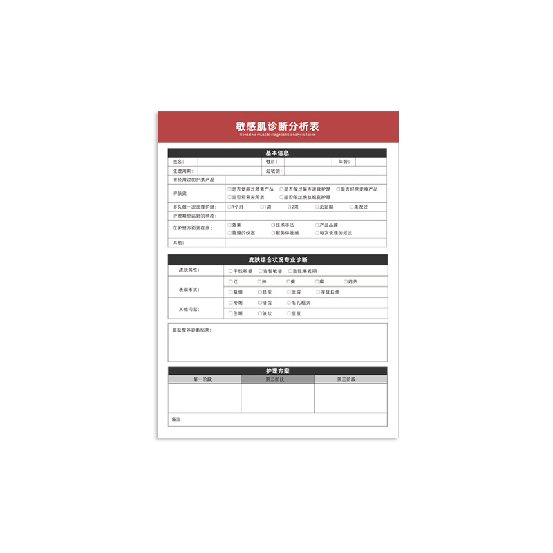 现货美容院问题性肌肤面诊单祛痘祛斑敏感肌抗时光诊断分析咨询表