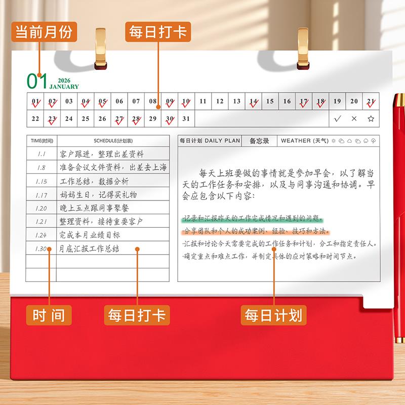 台历2026年新款创意简约办公桌面摆件月历卡通日程计划本ins风考研年历广告定制马年工作打卡小日历订做印刷