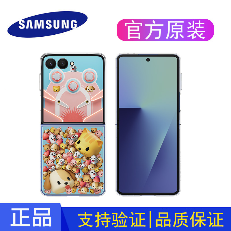 官方三星zflip7手机壳智能主题原装flip7透明主题发光动画保护套防摔7代小折叠智能外壳正品EF-ZF766原厂硬壳