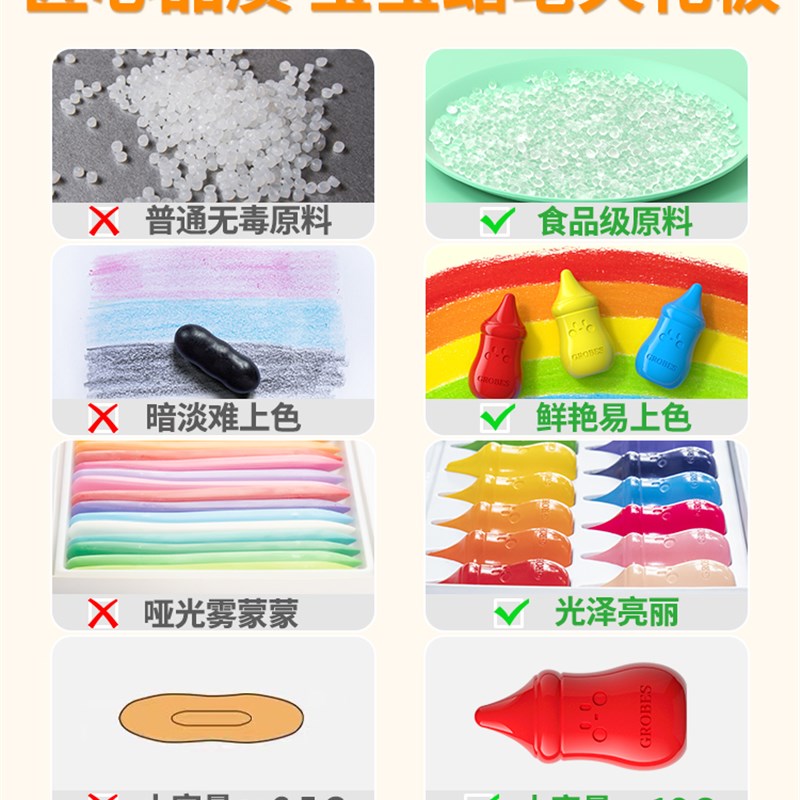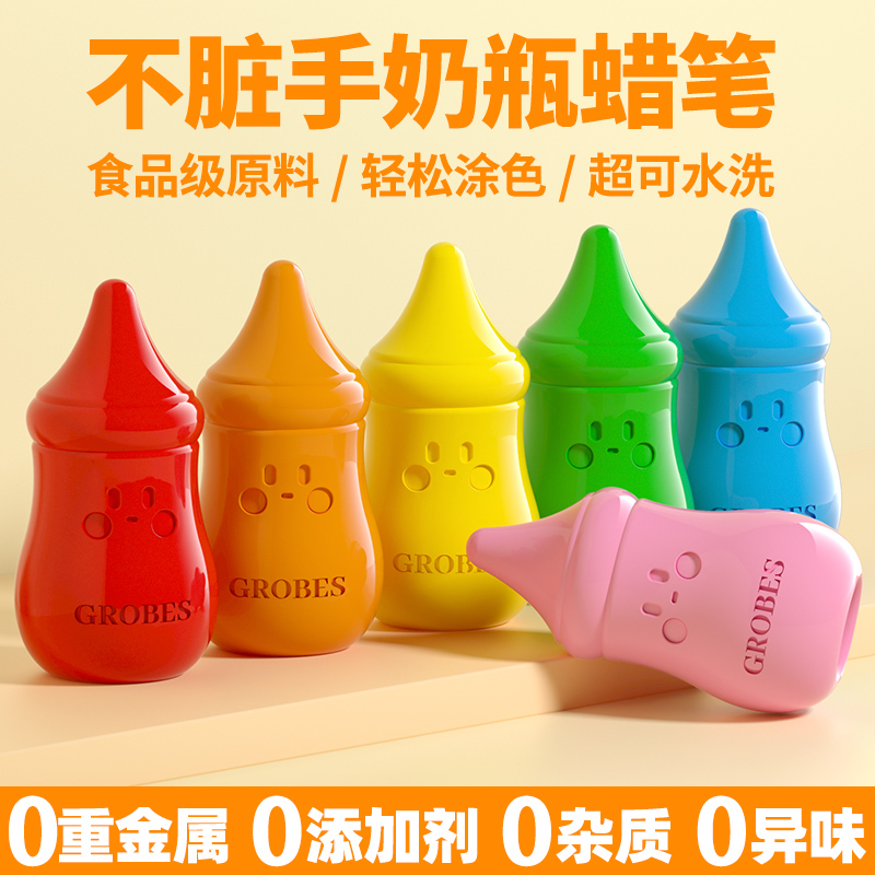GROBES宝宝奶瓶蜡笔安全画笔可水洗不脏手幼儿园儿童丝滑不粘手油