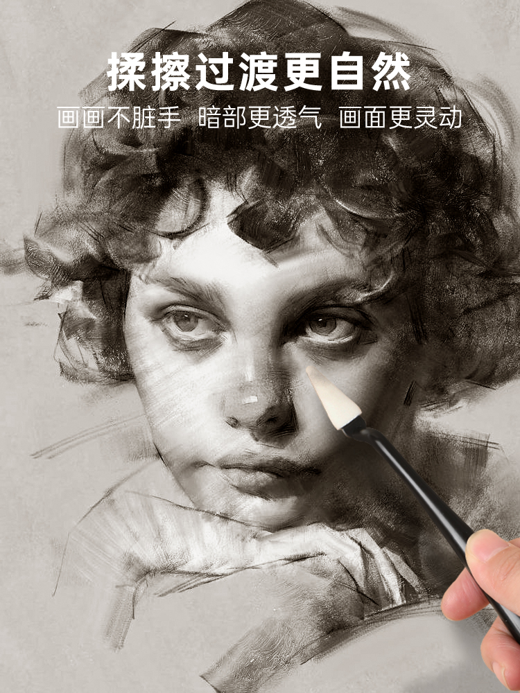 卡西米尔素描擦刀美术生专用晕染油画棒揉擦笔工具套装高光刷刮刀擦海绵球替换头双头灰面擦纸笔揉擦棉美妆蛋