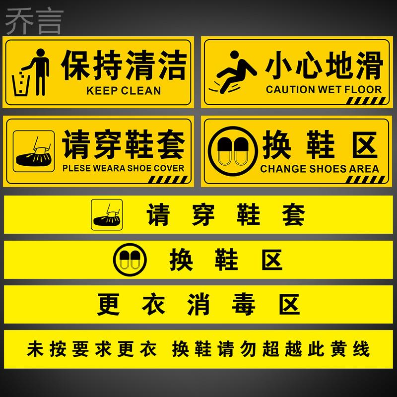 更衣消毒区换鞋区地贴请穿鞋套保持清洁距离小心地滑温馨提示贴无菌区污染区医院分类区域指示标识一米线定制
