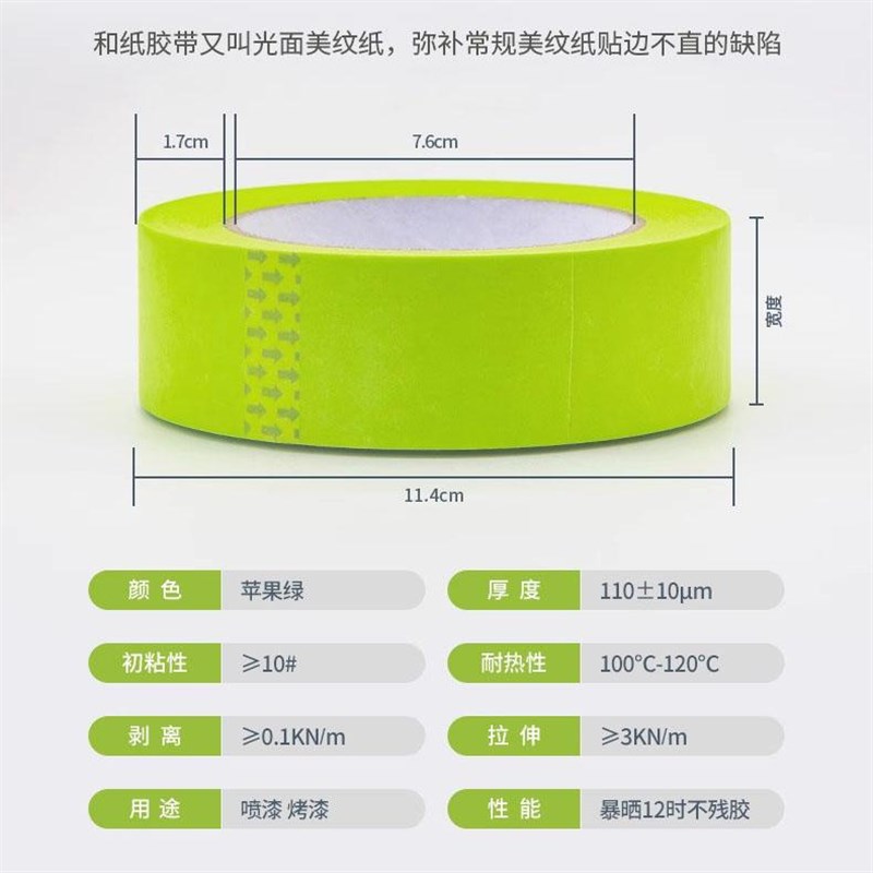 汽车烤漆和纸胶带耐高温绿色喷漆遮蔽美纹纸墙面分格线 线条加粘
