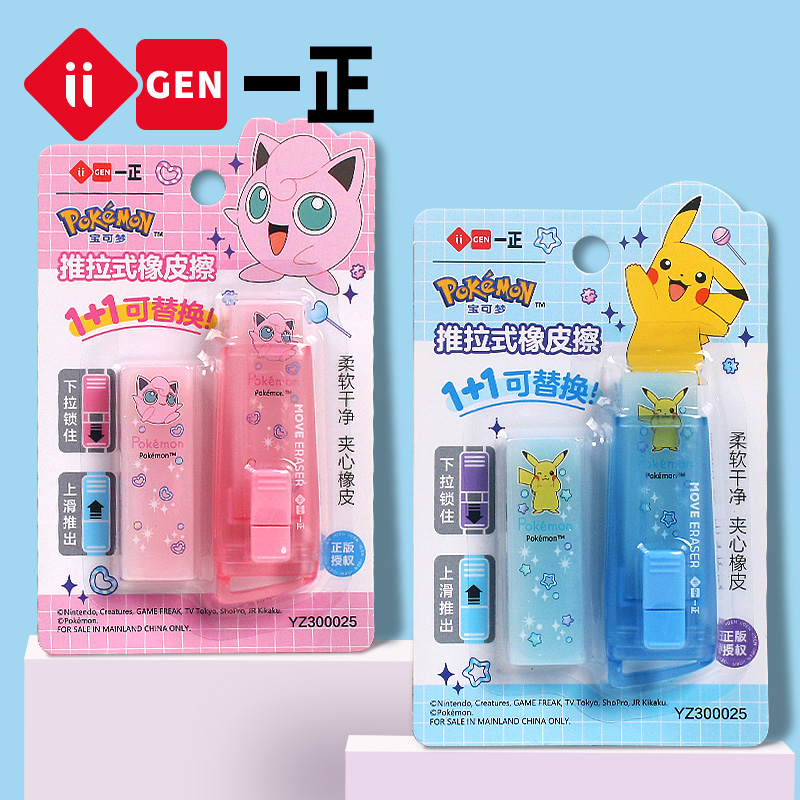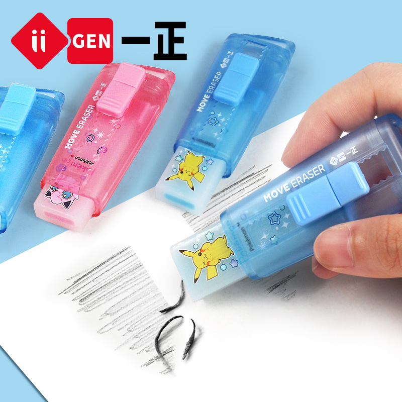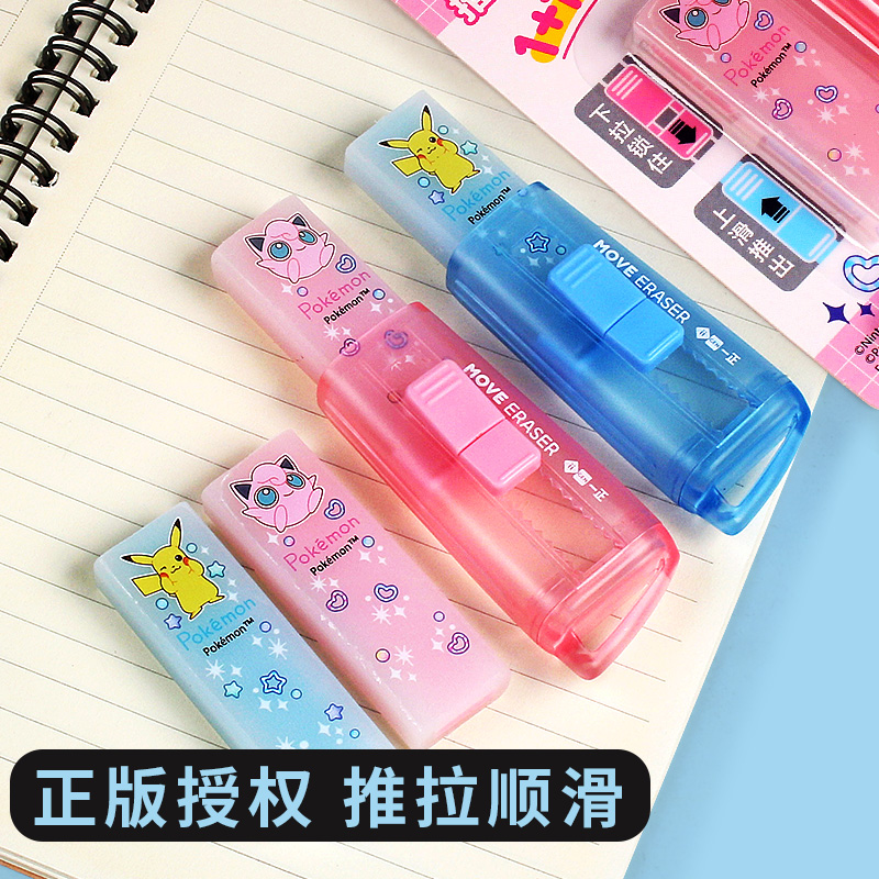 一正推拉橡皮擦宝可梦皮卡丘限定推动象皮小学生幼儿园专用不易留痕少屑擦字成线干净儿童美术绘画学习用品