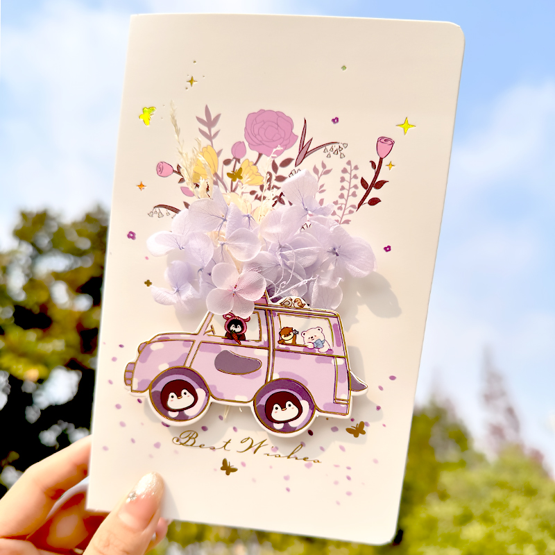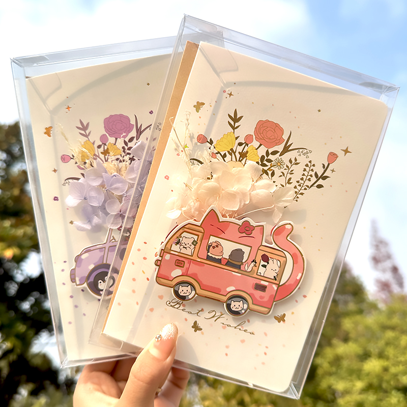 生日贺卡教师节创意立体干花手写折叠小卡片纸送女友男生情书情侣浪漫表白情人节礼物花束祝福留言小众明信片