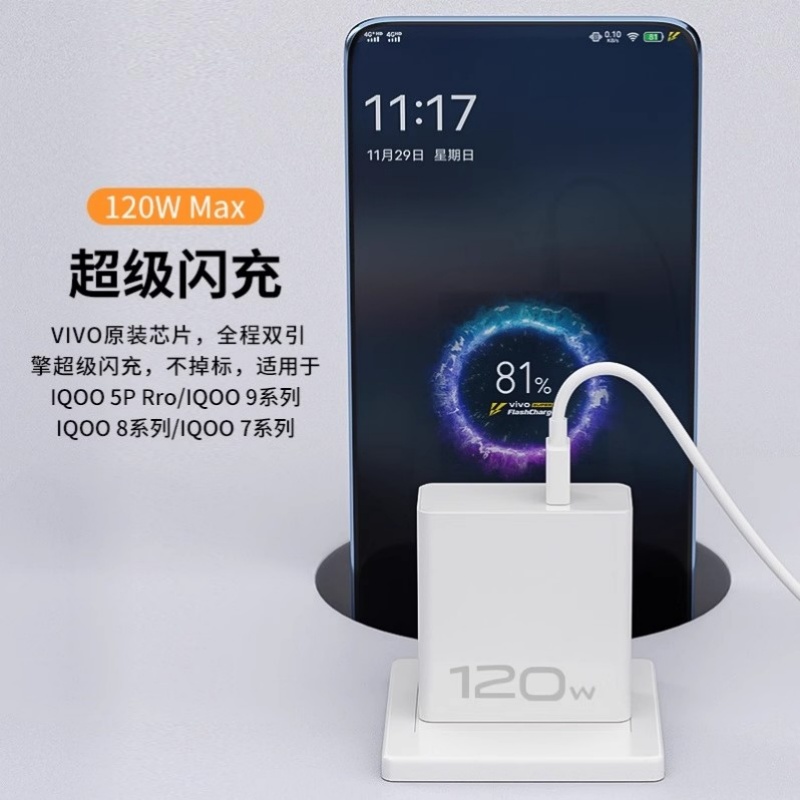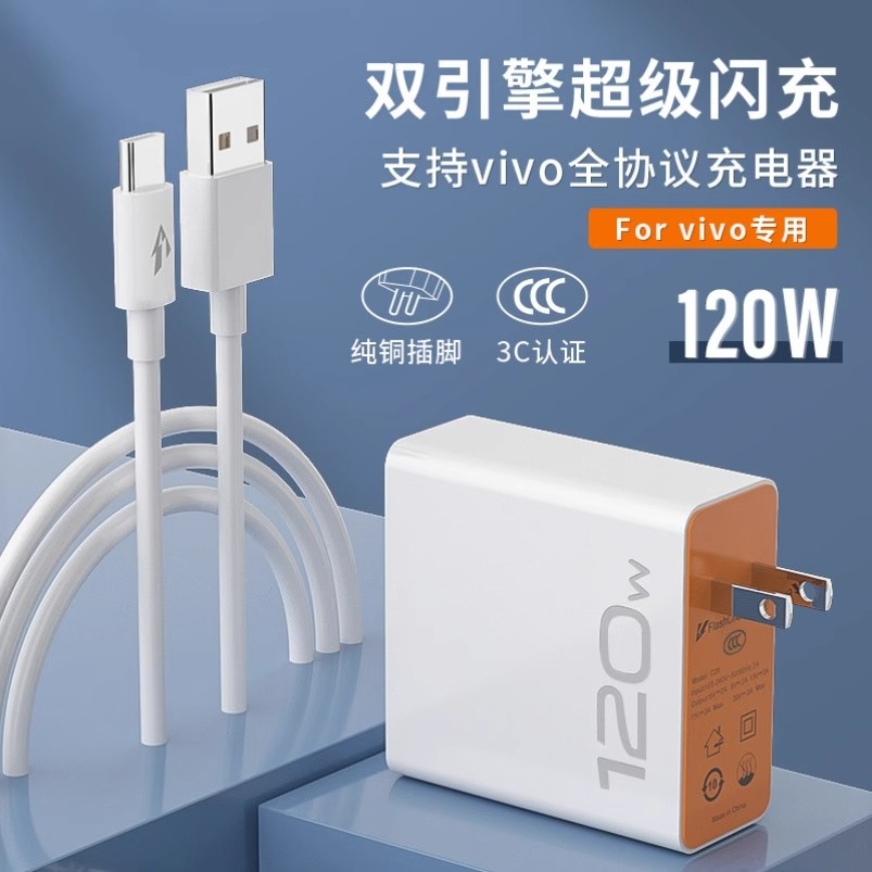 适用VIVO120W超级闪充iqoo7/8/9/10pro充电器vivoX90手机插头6a数据线爱酷neo5快充线typec套装快充原装然臣