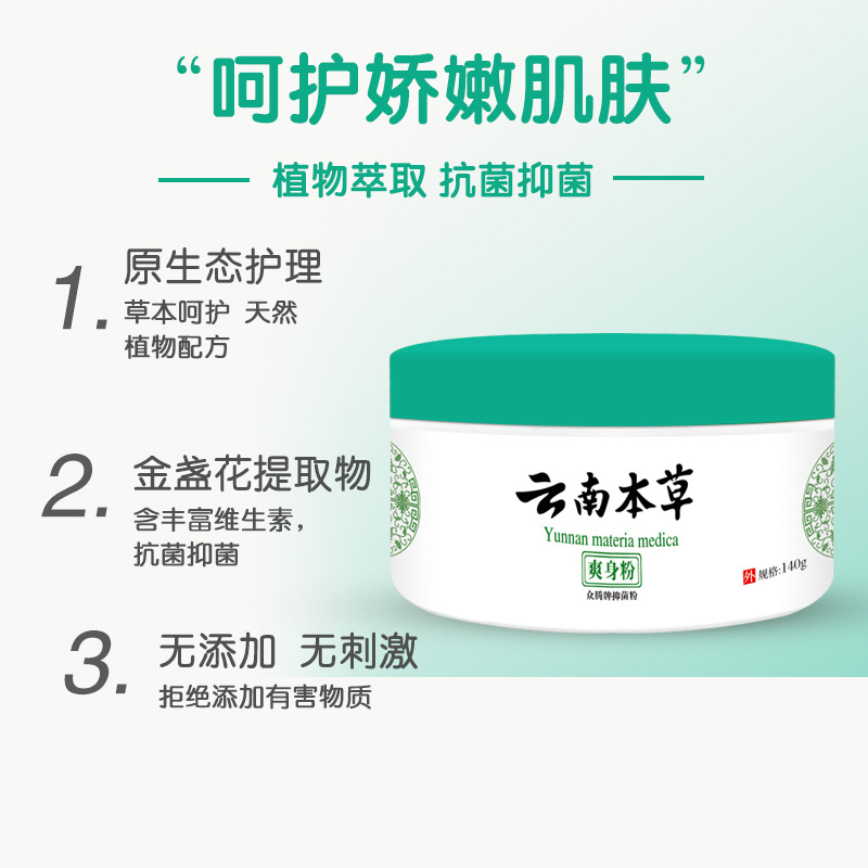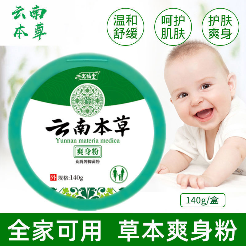 云南本草爽身粉儿童爽肤止汗止痒痱子粉清爽抑菌送粉扑成人可用