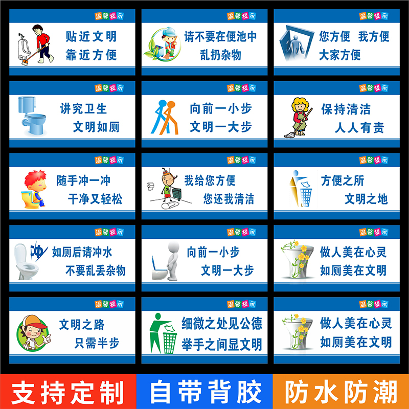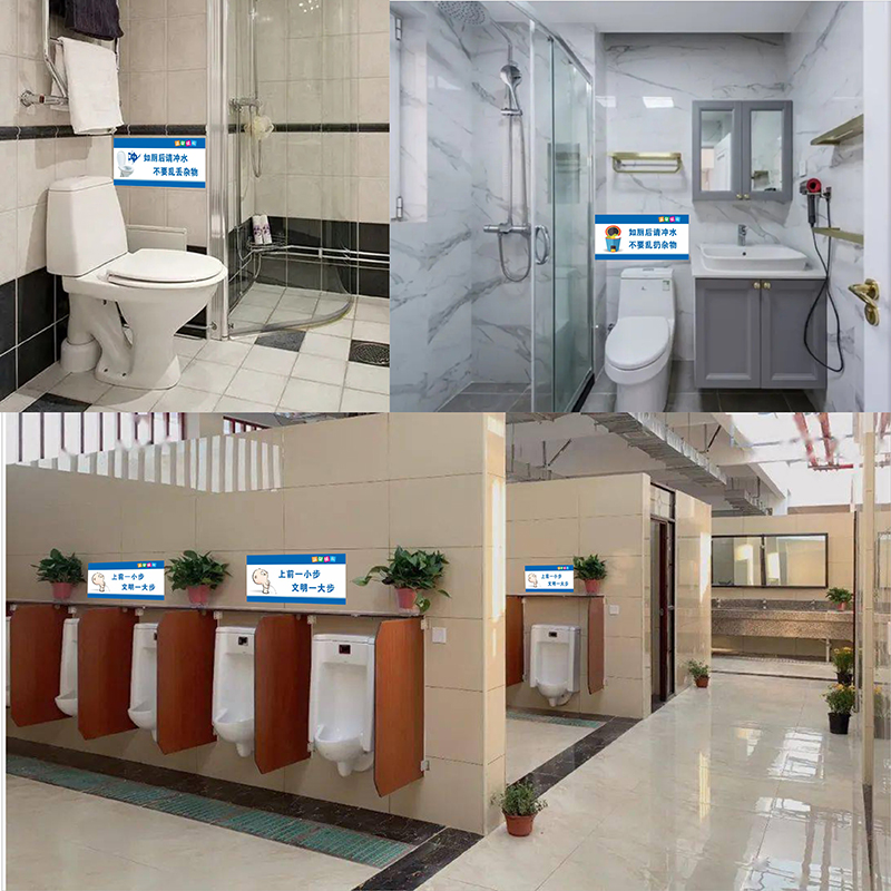 温馨提示牌标识语保持清洁人人有责来也匆匆去也冲冲如厕后请冲水马桶易堵请勿将垃圾杂物厕所洗手间卫生间贴