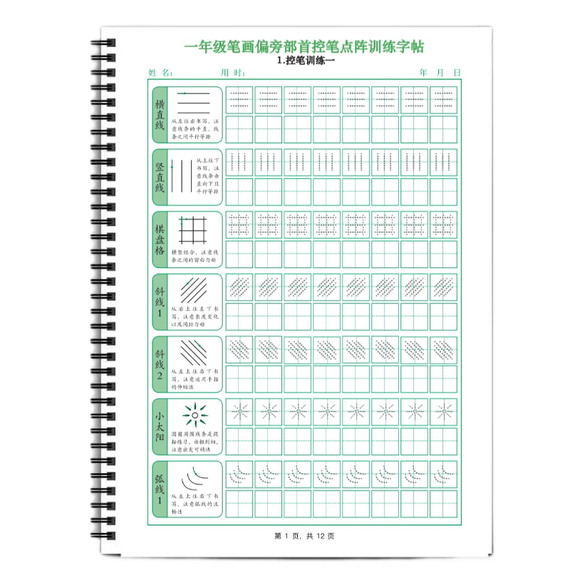 儿童控笔点阵训练字帖基础笔画偏旁部首描红本每日一练幼小衔接一年级描红练习本书写幼升小