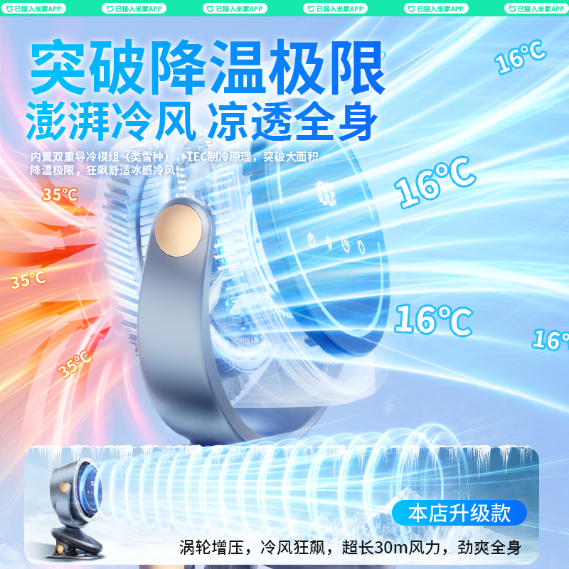 已接入米家APP】2025新款自动摇头空调扇静音办公室桌面小风扇usb充电学生宿舍夹式小型电风扇超长续航米制冷