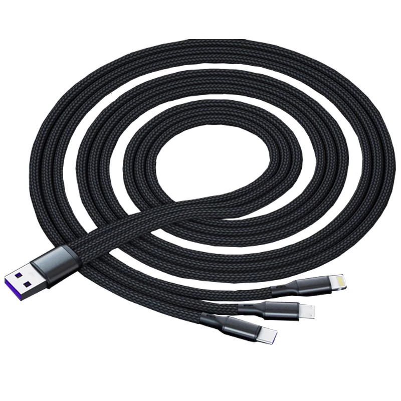 新款100w一拖三快充数据线车载三合一带灯超级闪充适用苹果iphone华为荣耀Type-C安卓vivo通用充电器多头