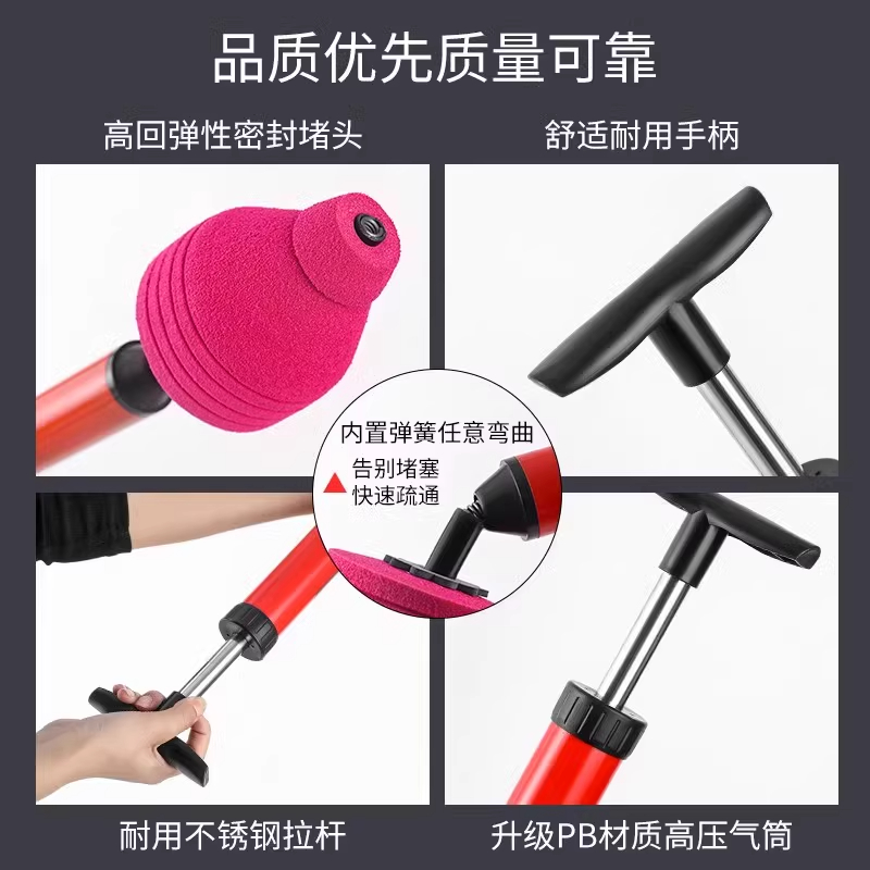 马桶下水道疏通神器一炮通高压气通厕所厨房管道疏通堵塞专用工具
