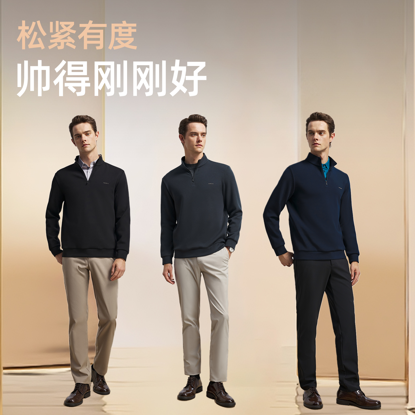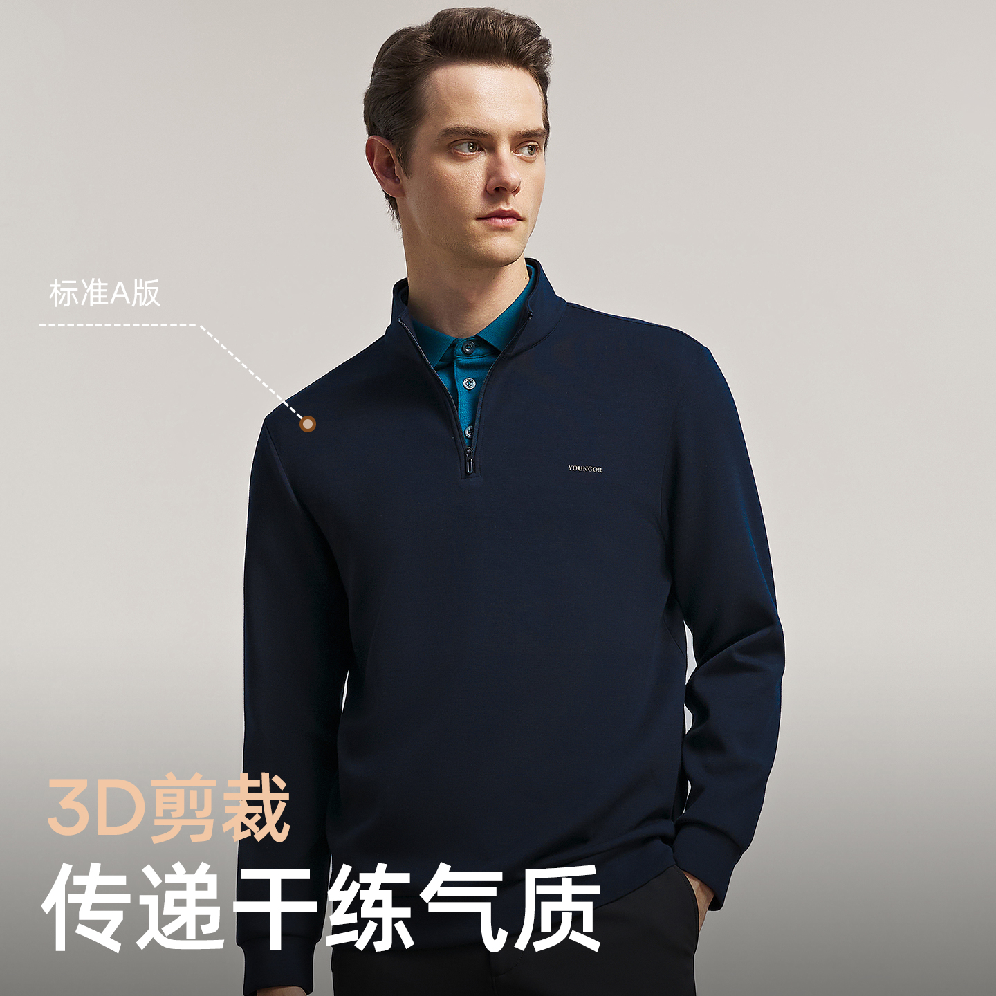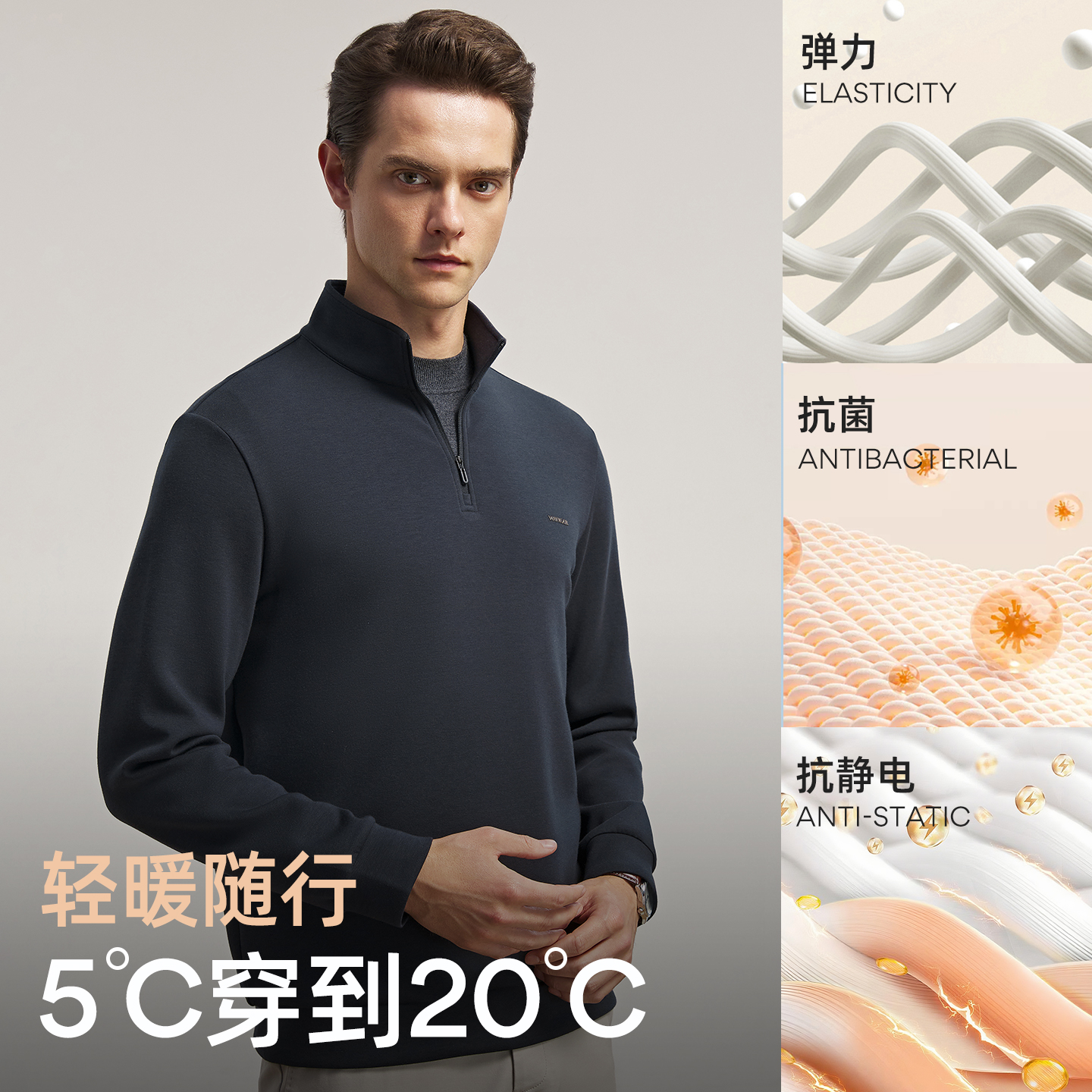 【抗菌+抗静电】雅戈尔男士秋冬季半高领半拉链款纯色套头卫衣