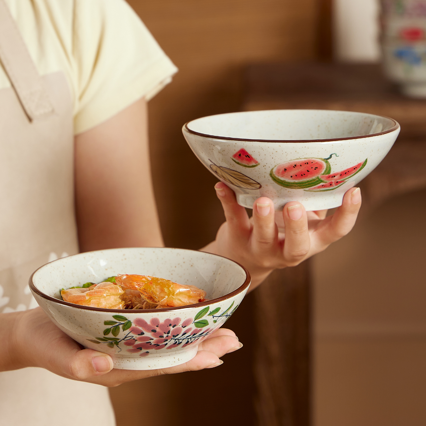 复古中式饭碗家用2025釉下彩陶瓷餐具喝酒碗面碗汤碗蘸料碗火锅