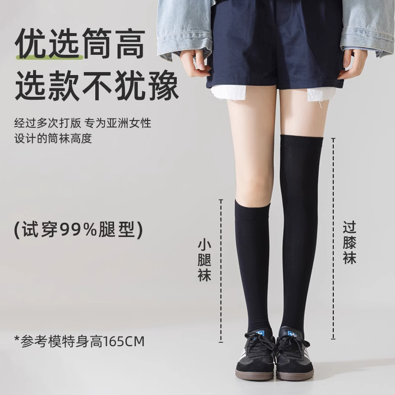 过膝袜子女高筒袜秋冬季加绒加厚保暖大腿纯色冬天半截长筒袜膝盖