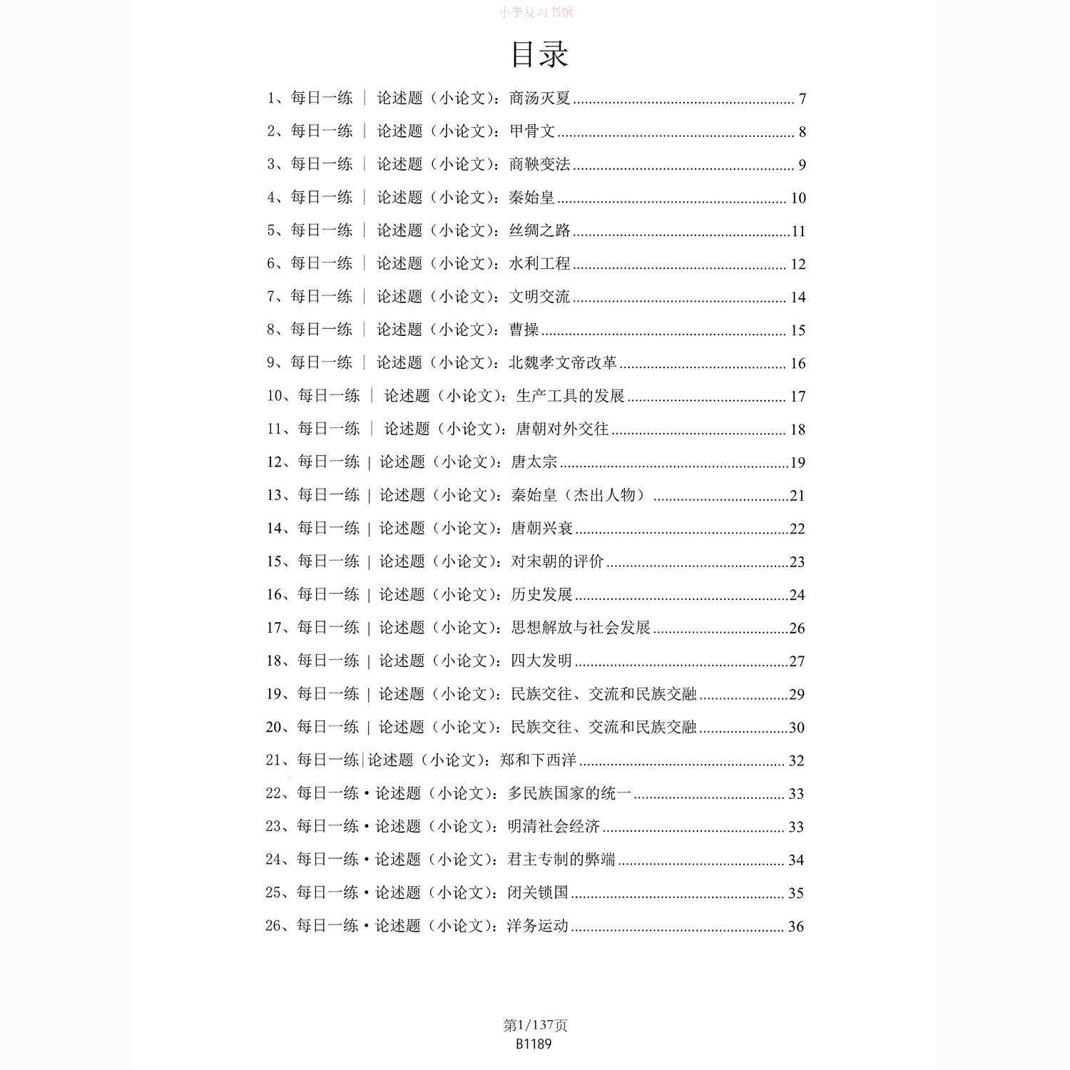 24人教修订版中考历史论述题小论文每日一练初中789年级复习冲刺