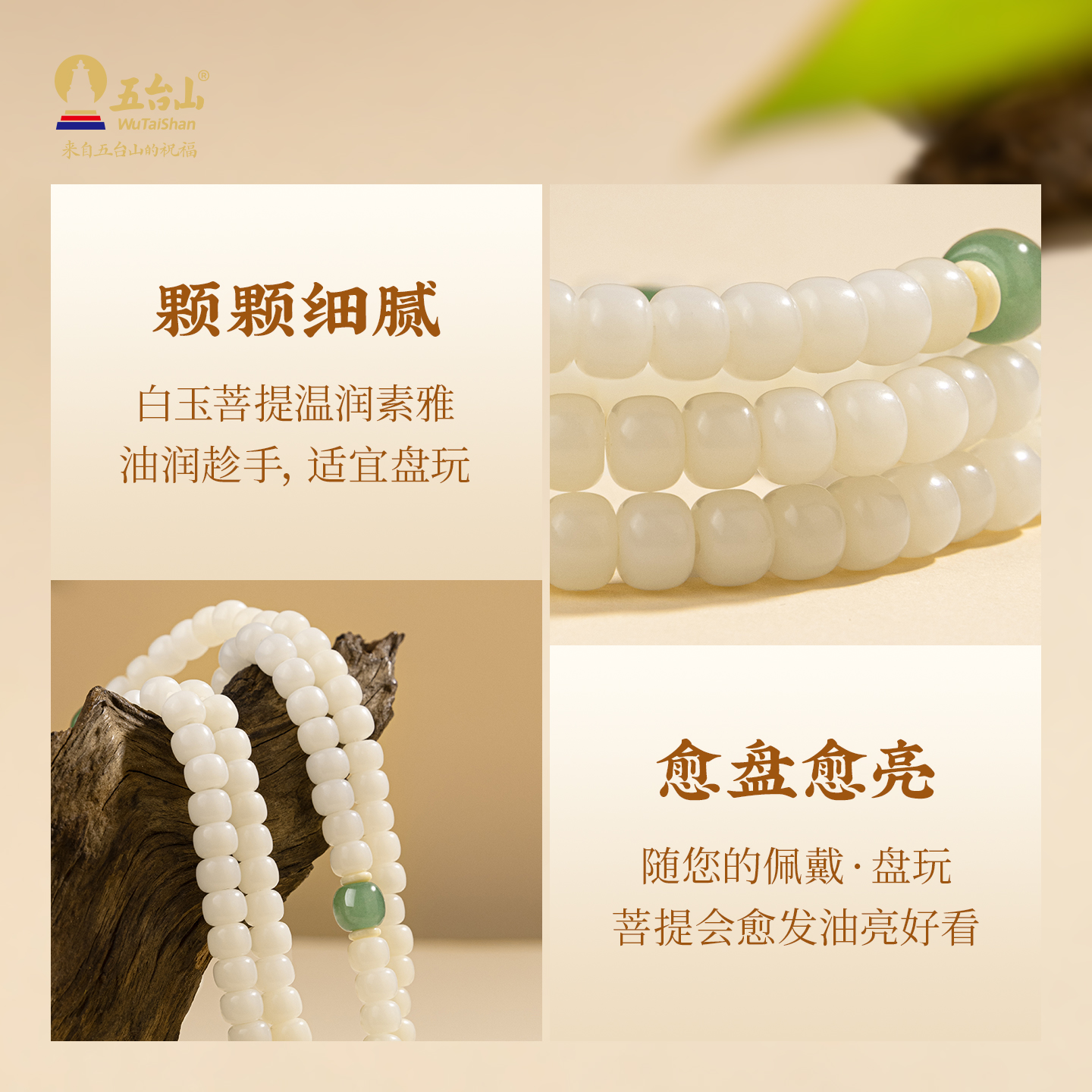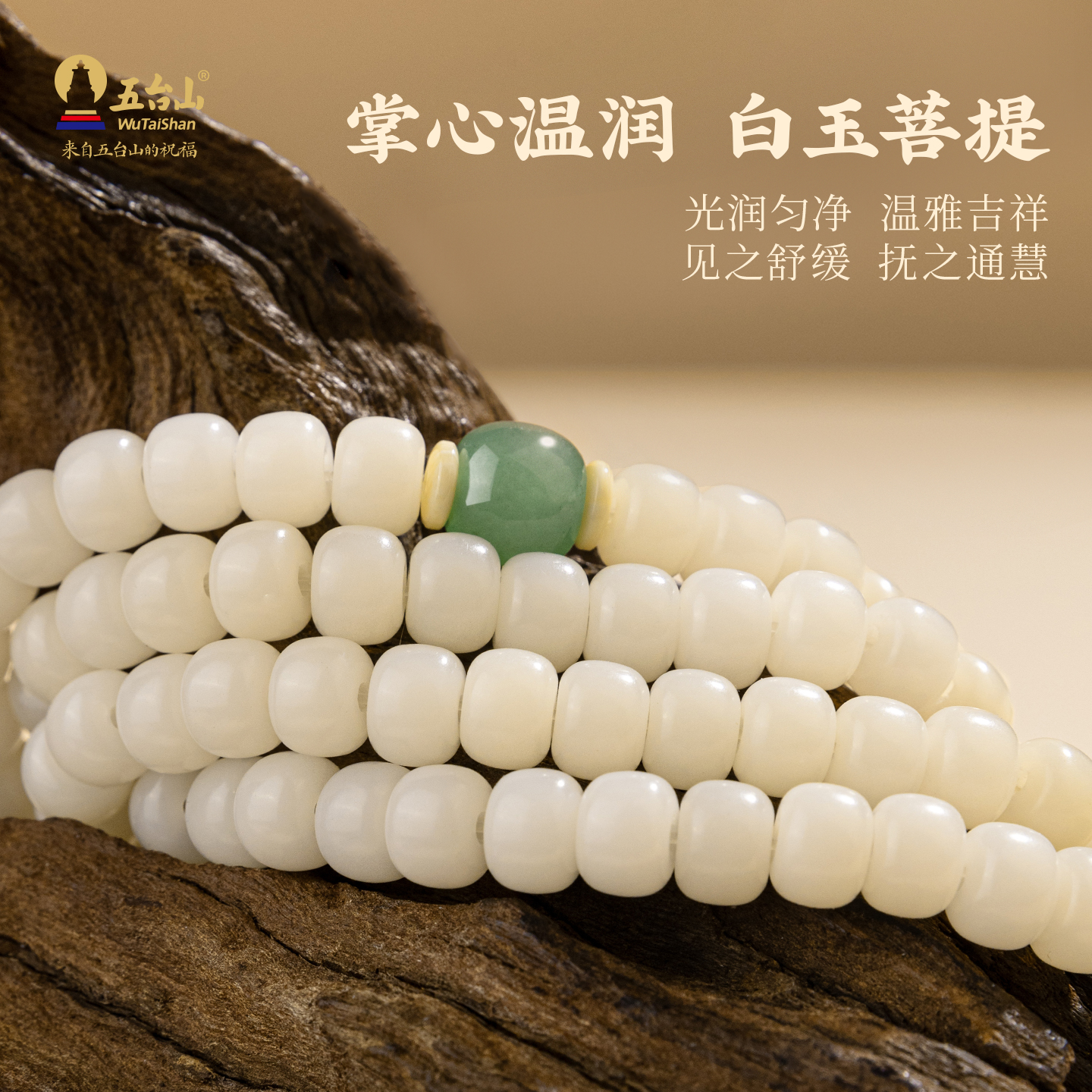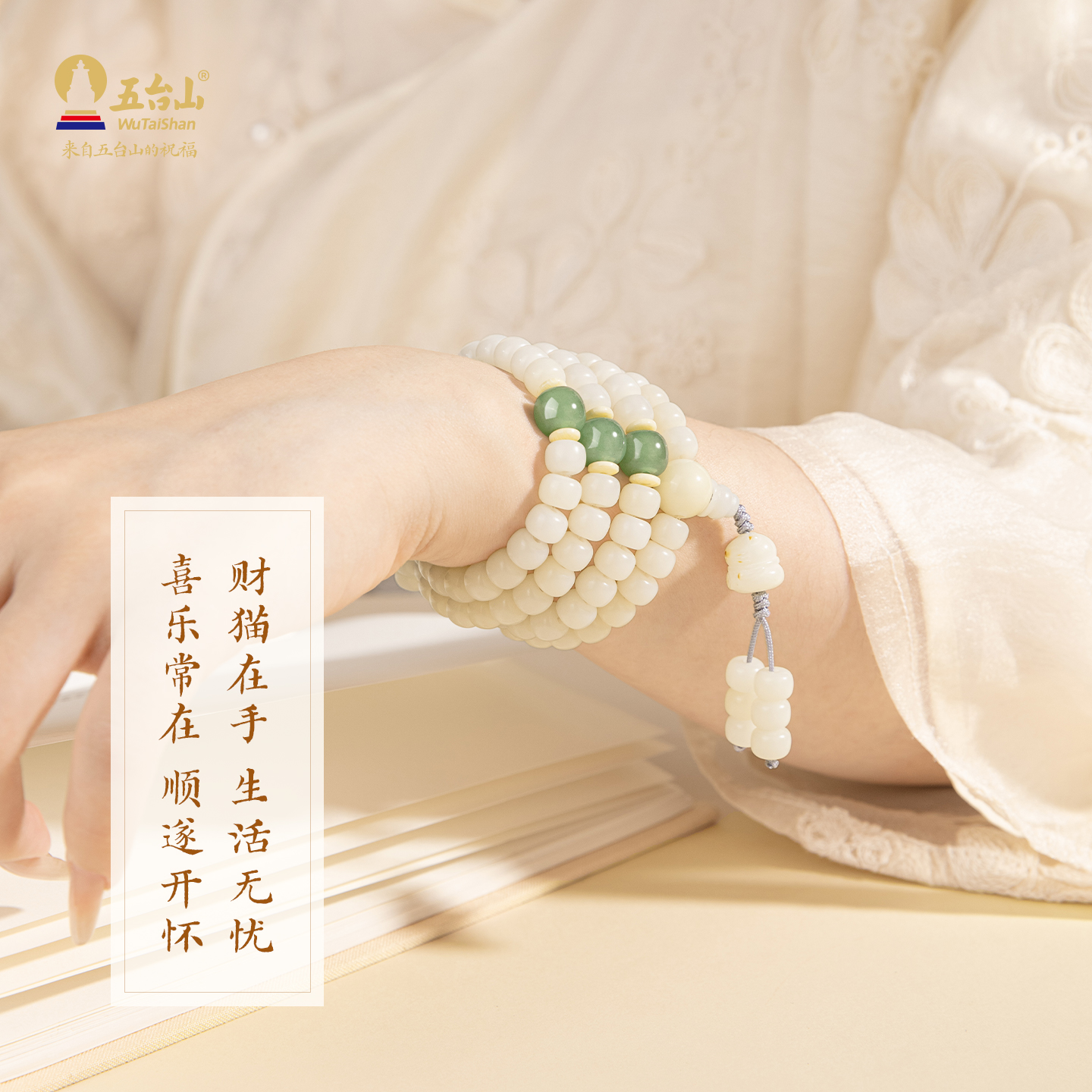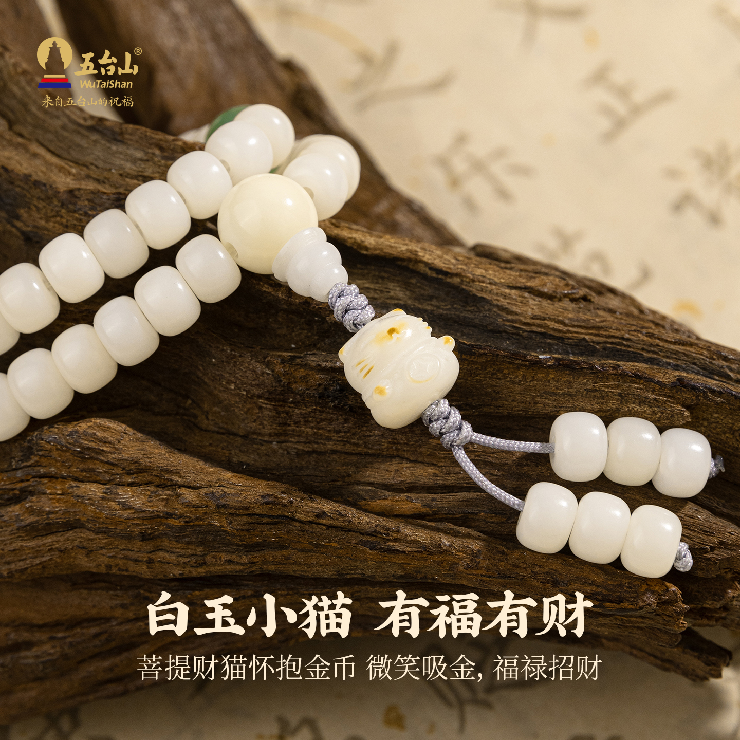 五台山白玉菩提手串108颗盘玩念珠东陵玉虎眼石转运珠招财猫手链