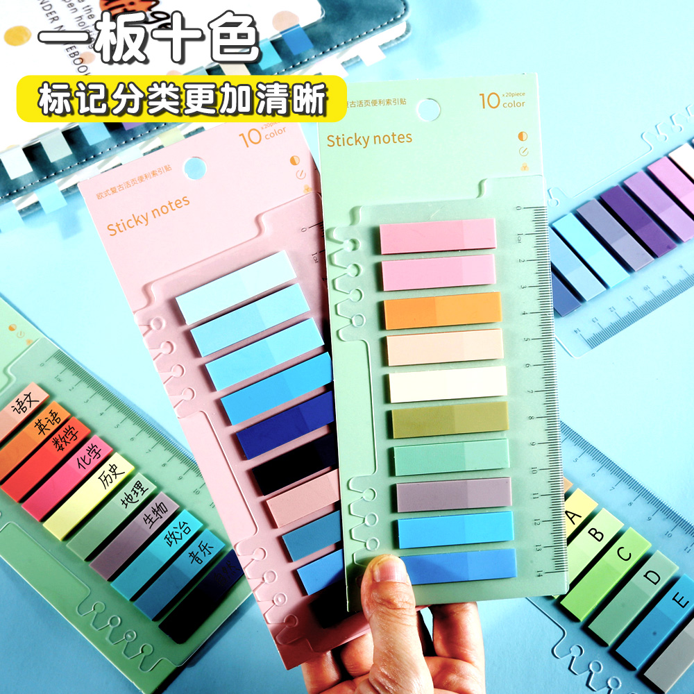 便利贴ins风莫兰迪色索引贴标签贴纸透明小条活页索引科目分类可书写学生用标记分类粘性强N次贴可撕贴便签纸