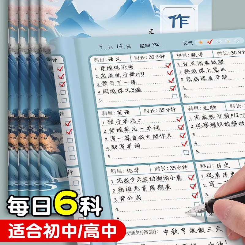 2025新款作业登记本初中生记作业本记录本古风高颜值本子初一中学生加厚每日作业计划表小学生专用家校联系本