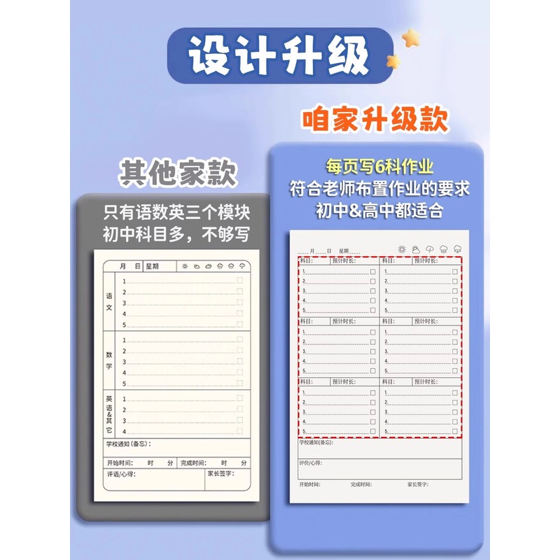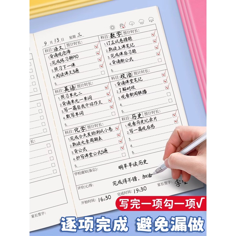 作业登记本小学生专用记作业本初中生高中生通用a5彩色励志高颜值课堂抄写记录本家校联系自律打卡学习计划表