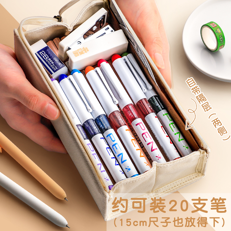 日本KOKUYO国誉一米新纯笔袋女孩文具铅笔盒初中女男孩子ins日系大容量男生小学生文具盒简约笔盒高颜值笔袋