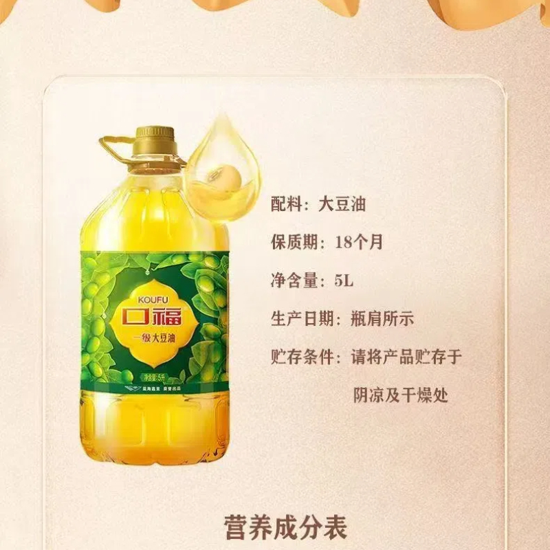 福临门一级大豆油食用油5L桶装营养油家用炒菜纯正香中粮