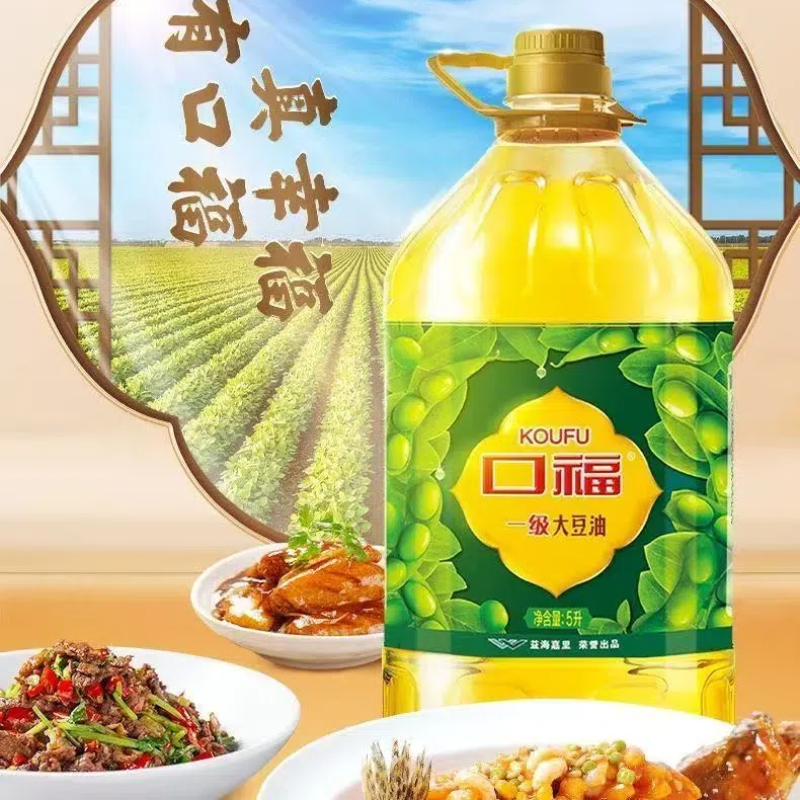 食用油口福一级大豆油转基因整箱装烹饪煎炸炒菜5L*4桶
