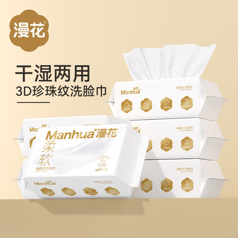 漫花洗脸巾一次性加大加厚款干湿两用擦脸巾洗脸巾家庭装洁面巾