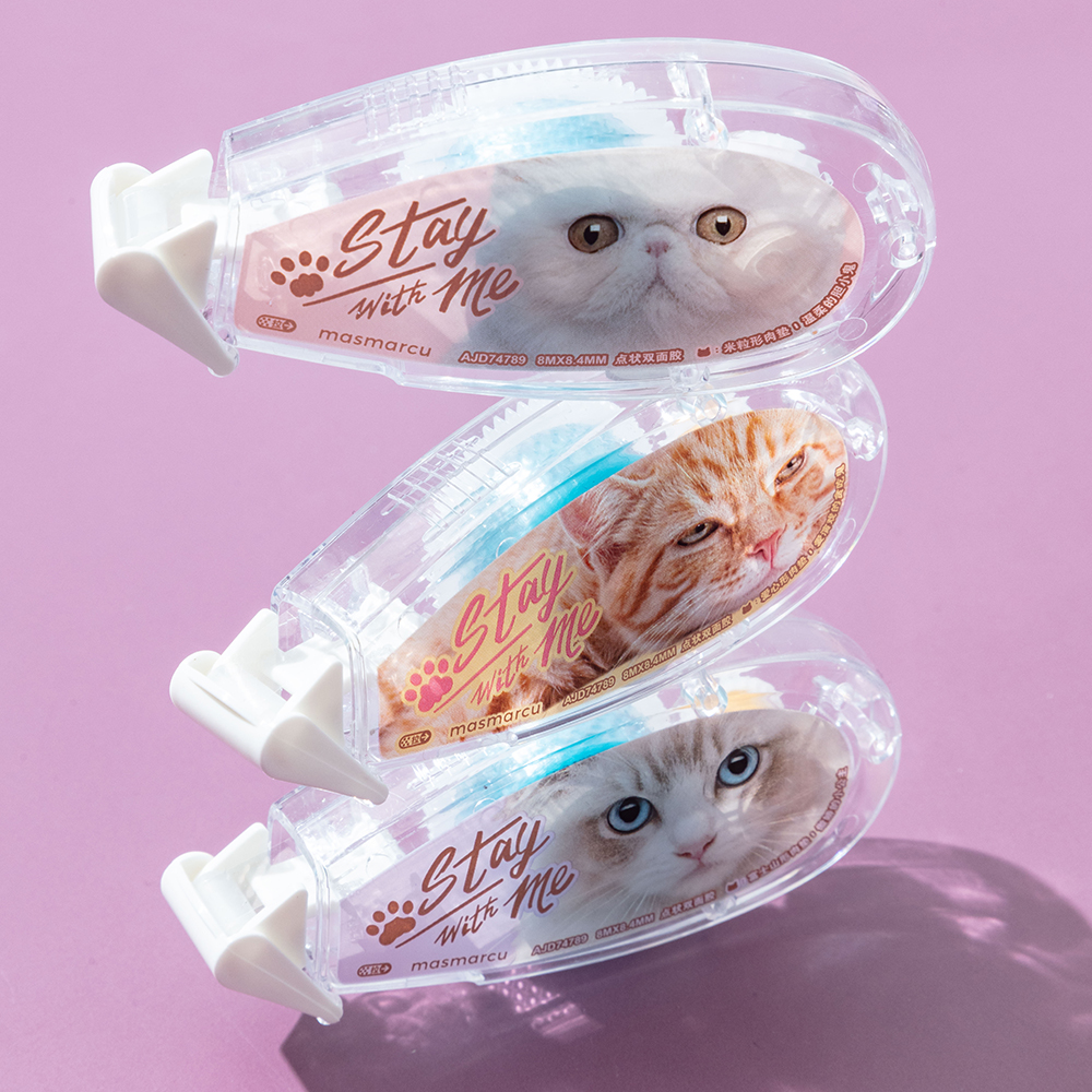 晨光masmarcu点点胶全是喵手帐胶带点状透明双面胶修正带式创意儿童手工DIY高粘度错题粘贴大容量无痕不留胶