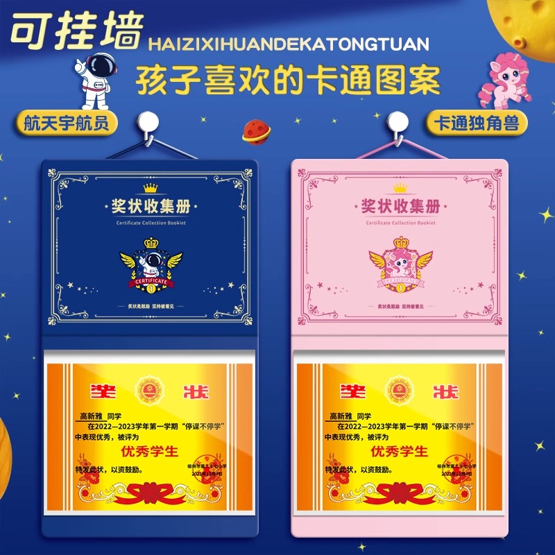 奖状收集册可挂墙展示男孩女孩荣誉证书a4儿童收纳神器收藏册本相册放装作品的册子文件夹小学生画册收藏夹A5