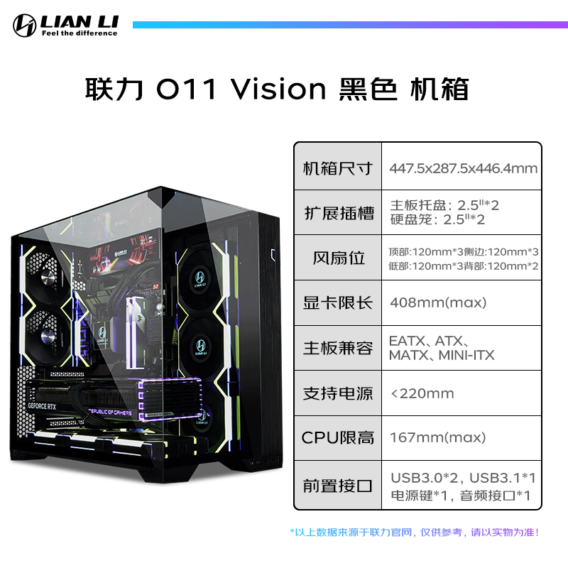 联力包豪斯O11 Vision Compact海景房机箱无立柱ATX三面玻璃可换