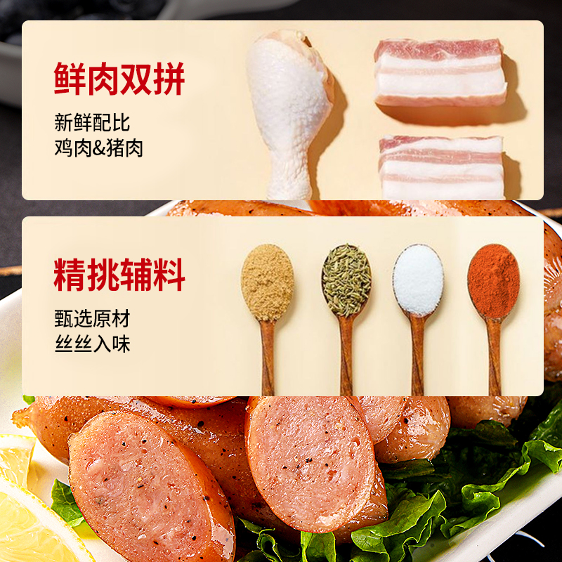 皇家小虎火山石脆皮烤肠纯肉香肠热狗空气炸锅食材地道肉肠黑胡椒