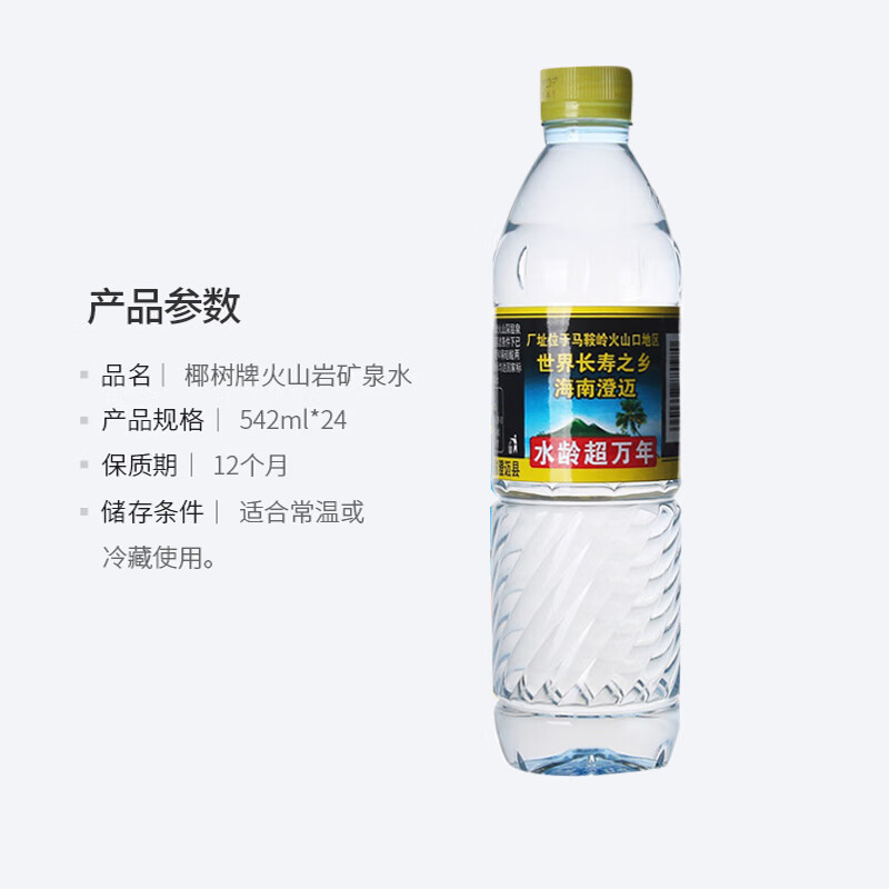 椰树火山岩天然矿泉水542ml*24瓶整箱世界长寿乡海南产小瓶饮用水