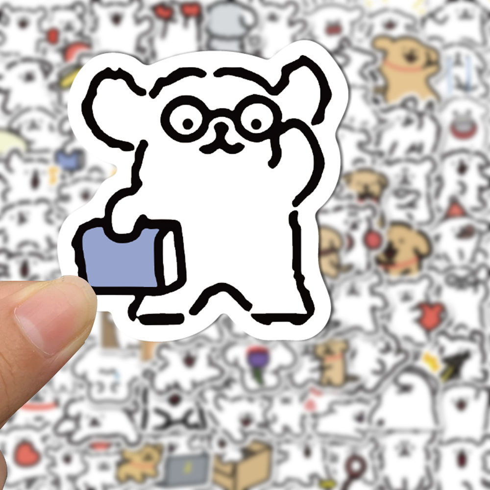 205张马尔济斯线条小狗贴纸可爱卡通创意diy手账电脑装饰防水贴画